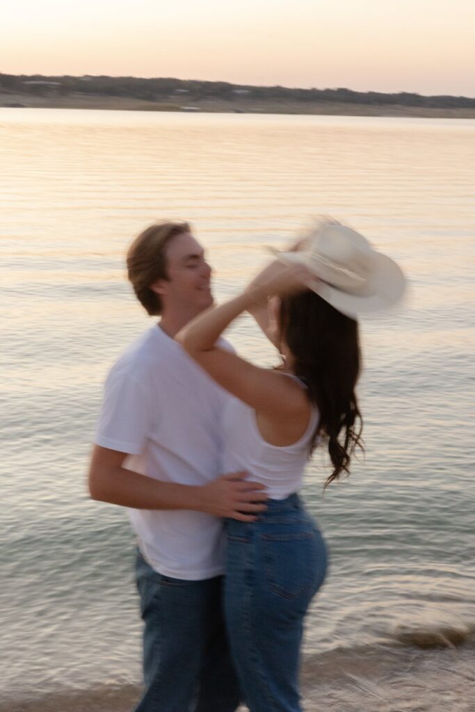 Hanging out with Taylor and Mitchell on Lake Travis felt less like an engagement session and more like stepping back into a day I’ve lived before—a fall afternoon that’s nostalgic, comfortable, and just easy in every way. It was the kind of day that settles into your memory without trying too hard, the kind you wish you could bottle up for later.