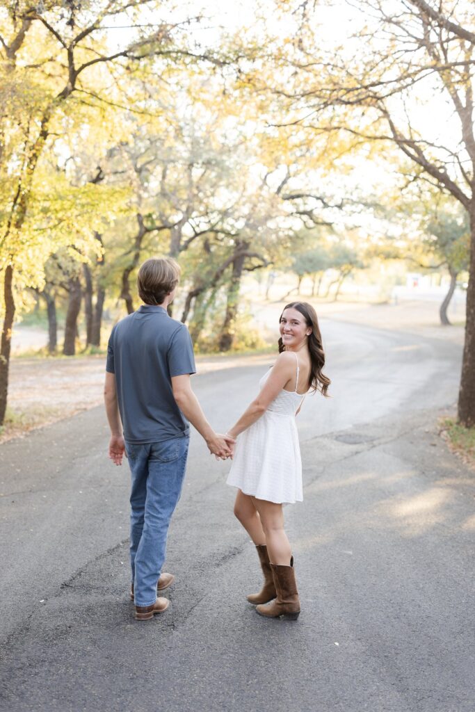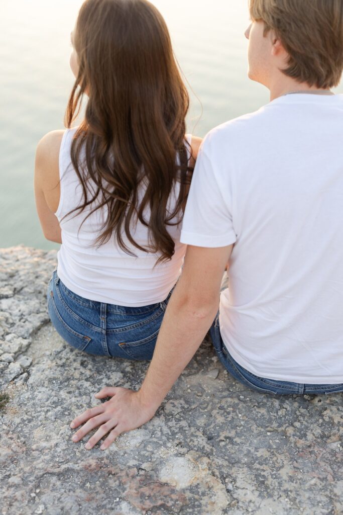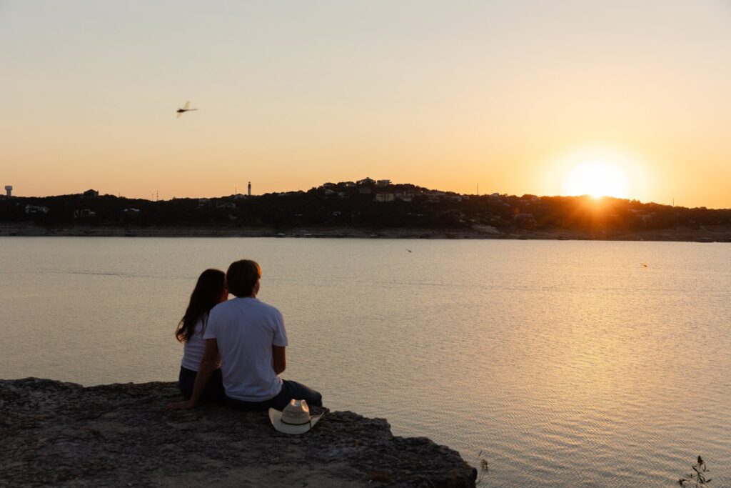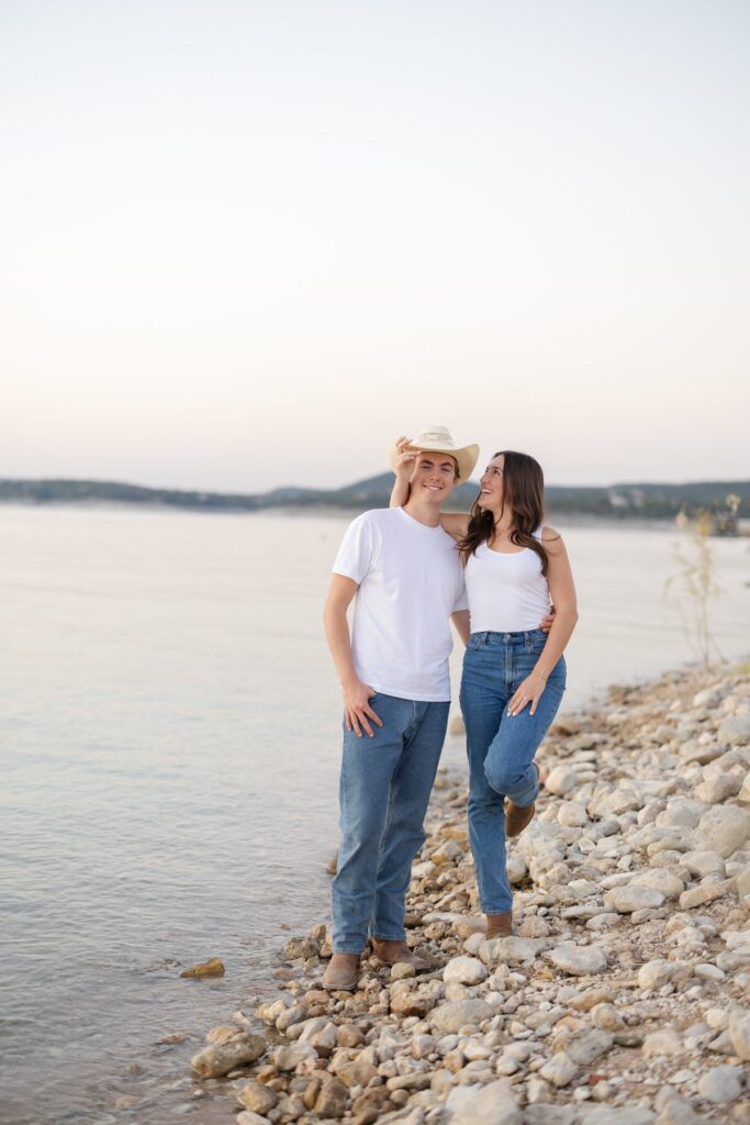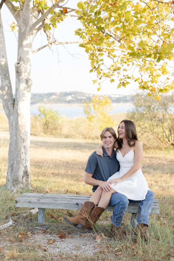 Hanging out with Taylor and Mitchell on Lake Travis felt less like an engagement session and more like stepping back into a day I’ve lived before—a fall afternoon that’s nostalgic, comfortable, and just easy in every way. It was the kind of day that settles into your memory without trying too hard, the kind you wish you could bottle up for later.