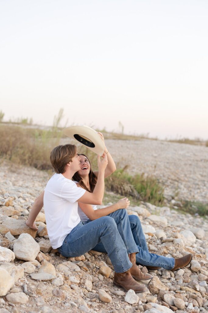 We kept it simple: skipping rocks, pointing out favorite trees, kicking around in cowboy boots while a Yacht Rock playlist carried the mood. There was nothing fussy or overplanned, just time well spent. And honestly, that felt perfect for Taylor and Mitchell—two people who seem to know how to enjoy a moment without forcing it.