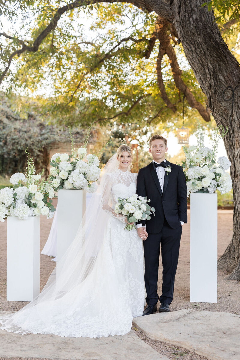 Savannah and Matt said their vows underneath the steady branches of a pecan tree with the sun streaming through the leaves. Their closest family and friends (all dressed to the nines in black tie) cheered them down the aisle and then were wow-ed by the magical florals dripping from every inch of the farmstead during dinner.