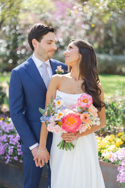 Nestled between overflowing gardens of colorful blooms with butterflies floating about, Elena and Justin were wed! Elena and Justin wanted their wedding to be lush and floral filled but kept their guest list on the intimate side so as to enable them to connect and go deep with their nearest and dearest on their wedding weekend.